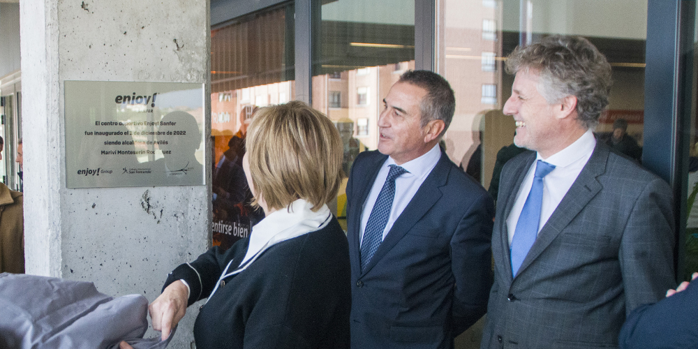 La inauguración contó con la presencia del vicepresidente del Principado, Juan Cofiño, y de la alcaldesa de Avilés, Mariví Monteserín, quien descubrió una placa conmemorativa de la puesta en marcha de este equipamiento tan importante para la ciudad. Así lo destacó en su intervención la regidora, para quien Enjoy Sanfer supone "un plus de calidad para Avilés". La alcaldesa destacó la completa red de instalaciones deportivas municipales con las que cuenta la villa, y dio la bienvenida a este proyecto, fruto de una fuerte inversión de la iniciativa privada, que viene a sumar "empleo y calidad". "Aspiramos a ser una ciudad con sello de innovación, y este centro también lo es", subrayó Monteserín.