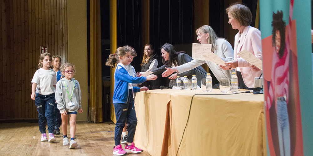 El salón de actos albergó esta mañana la entrega de los diplomas Cambridge de los exámenes realizados el curso pasado. La cita contó con la presencia de la representante de Cambridge University Press & Assessment para el norte de España, Gemma Fernández, y de la Asociación de Centros de Idiomas del Principado de Asturias (ACEIPA), Gill Brownlow. Ambas felicitaron a los más de 170 alumnos que recibieron sus certificados en los diferentes niveles y les animaron a seguir profundizando en el aprendizaje del idioma inglés. De igual manera, reconocieron la labor que profesores y familias realizan en pos de este objetivo. Completaron la mesa presidencial nuestra Directora Académica, Carmen Bueno, la Jefa de Estudios de Ed. Primaria, Belén Álvarez, y la Jefa de Estudios de ESO y Bachillerato, María José Menéndez.
