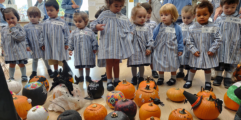 La fiesta de Halloween es, sobre todo en los últimos años, la protagonista de la jornada previa al puente de Todos los Santos, en especial para nuestros alumnos más jóvenes, que se dejan llevar por la magia de los personajes y la ambientación propios de esta festividad. Los pasillos de Ed. Infantil y la biblioteca fueron los escenarios principales de esta fecha, en los que no faltaron brujas, murciélagos, esqueletos, espantapájaros y calabazas, ¡muchas calabazas!